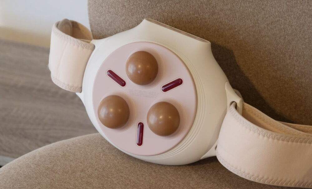 使い方はとても簡単。寝る30分前にお腹に当て、マジックテープで固定するだけ。温度と回転の強さは好みで調整でき、3〜10分の使用で十分に体がほぐれてきます。
