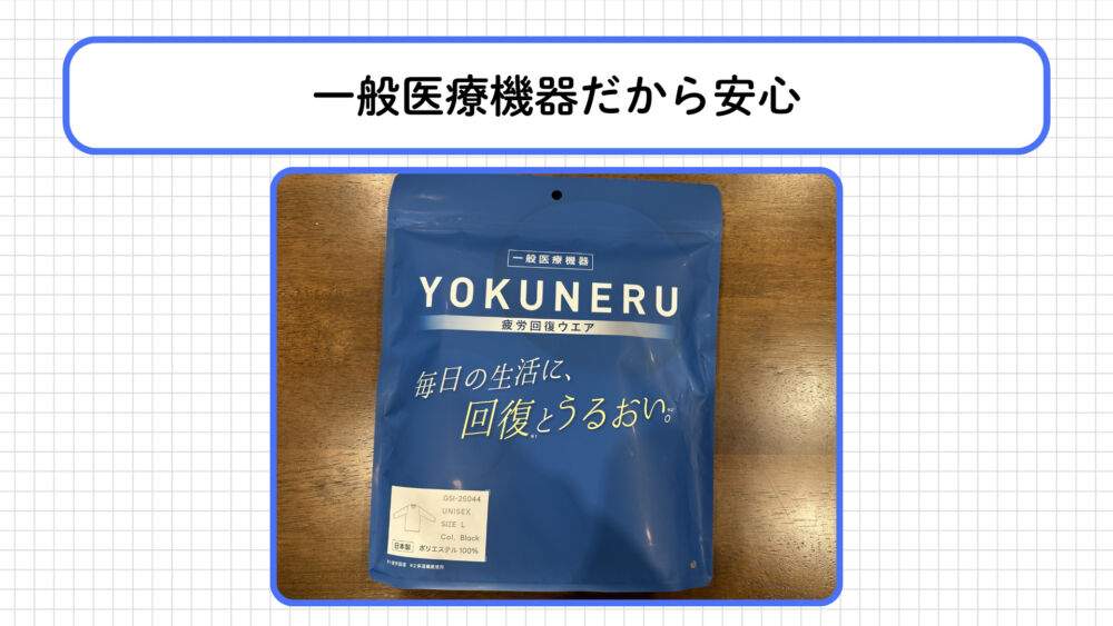 リカバリーウェアの中には雑貨品として販売されているものも少なくありませんが、YOKUNERUは医療機器としての基準をクリアしています。