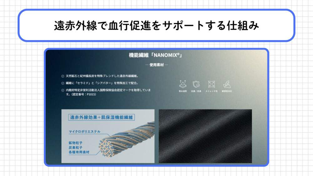 独自素材「NANOMIX」の特徴|遠赤外線×肌へのやさしさのダブルアプローチ