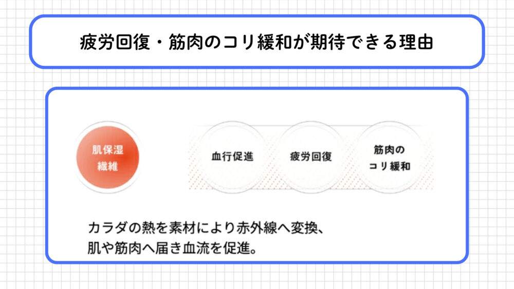遠赤外線の特性を活かした血行促進のサポートに加え、保湿繊維の使用で肌へのやさしさにも配慮している点が特徴です。