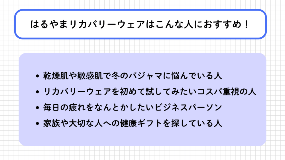 はるやまリカバリーウェアはこんな人におすすめ!